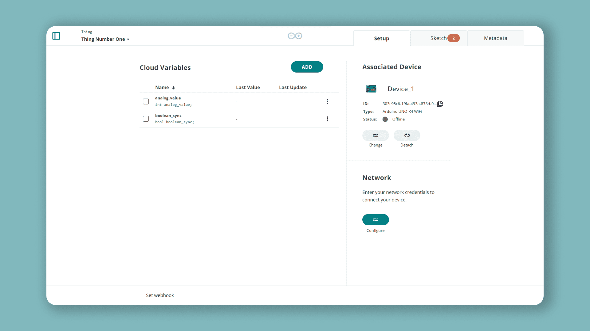 To enable Thing to Thing communication, we will first need to configure the two devices. If you have never used the Arduino Cloud before, you can check out our getting started with the Arduino Cloud guide.