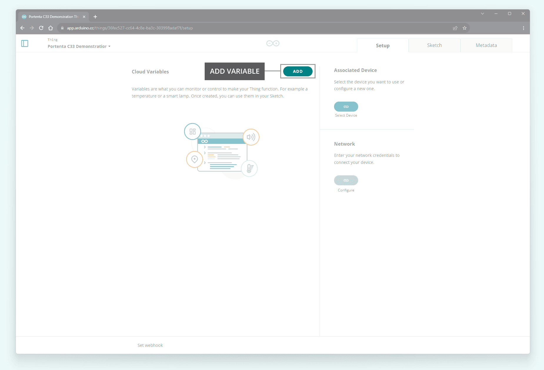 Go back to your Things and open the "Thing" you created. In the "Thing" setup page, navigate into Sketch, where you should see the online editor.